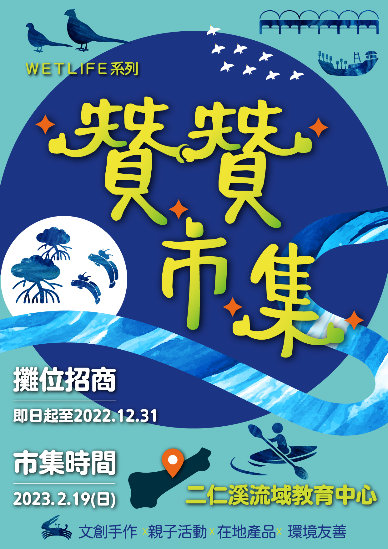 充滿故事性的二仁溪曾是臺灣保育的黑歷史,受到極嚴重的重金屬汙染,經過眾人及長期的河川整治與復育,以及自然演替,如今的二仁溪恢復生機,許多生物回歸,台灣濕地保護聯盟(以下簡稱本聯盟)也在2016年認養二仁溪流域的「港尾溝溪滯洪池」,並在滯洪池畔建立「二仁溪流域教育中心」,持續推動環境教育、生物調查與監測、棲地養護等工作。經過多年的養成,以及二仁溪整體聚落變化,越來越多團體投入二仁溪的自然保育與文史續存工作,也吸引民眾關心二仁溪的相關議題,本聯盟希望透過「贊贊市集」,邀請大家一起看到二仁溪的活化與生命力。