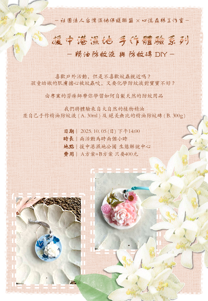 【高雄 援中港濕地】手作體驗系列 - 精油防蚊液與防蚊磚DIY