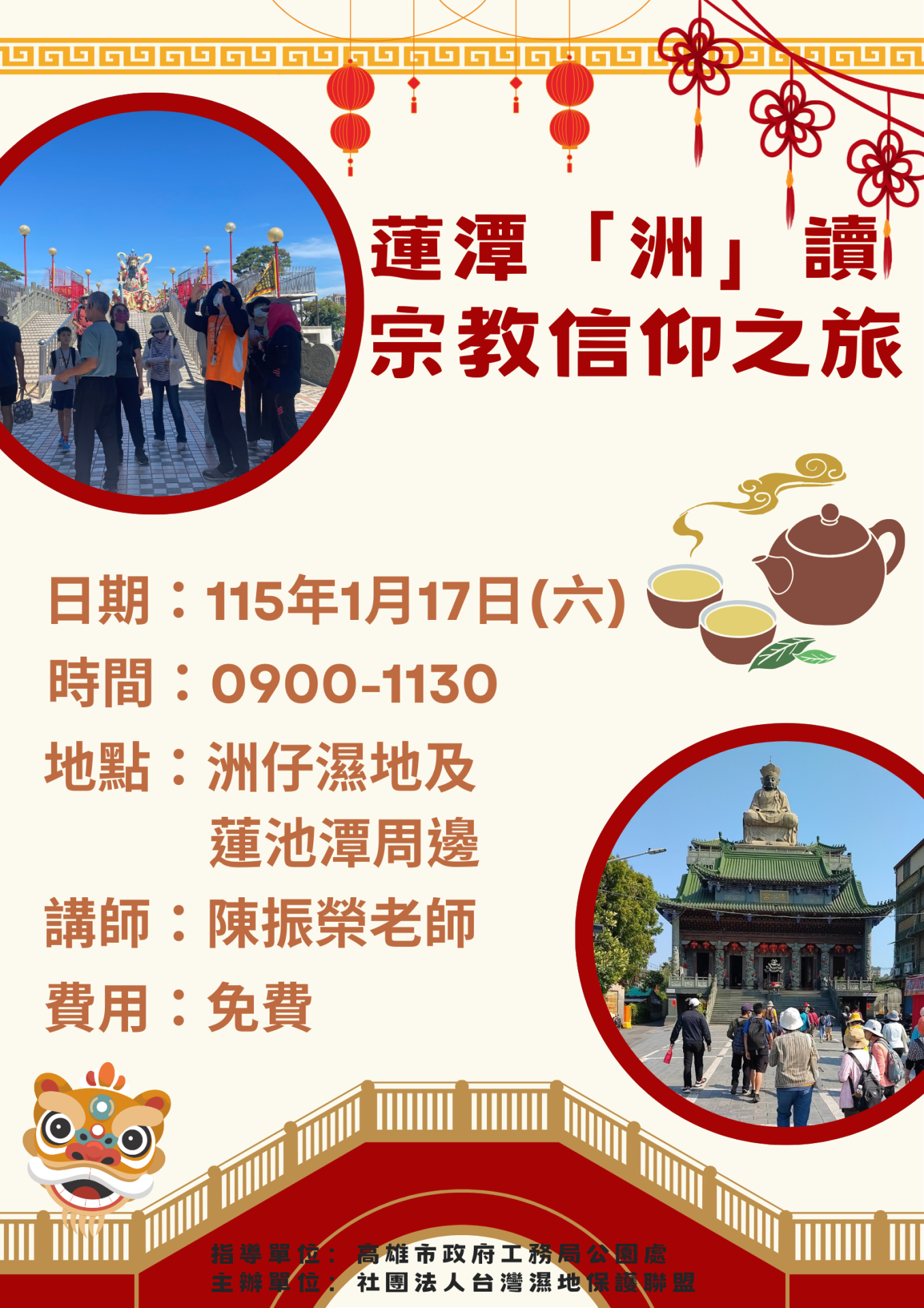 4. 洲仔濕地場域內有飲水機,請自備環保杯。