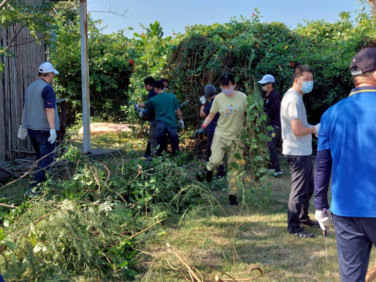 植栽組的夥伴幫我們整理朱槿叢、移除爬藤。