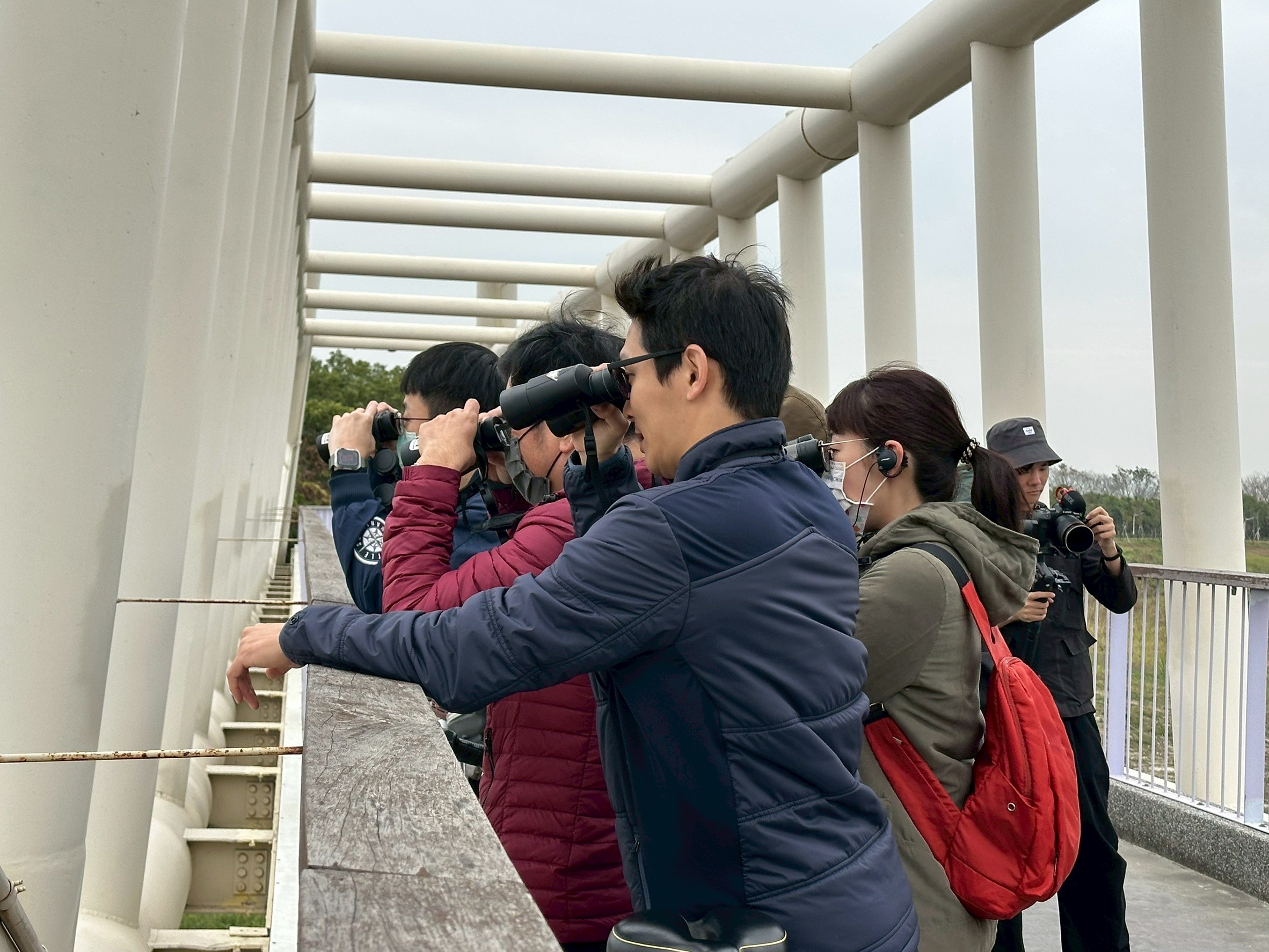 濕盟目前推動中長期保育計畫【二仁溪流域博物館2.0計畫】,是對下一階段的二仁溪流域保育工作之想像與推進,持續積極尋找一起推動保育工作的流域夥伴們。此次二仁溪鳥類調查體驗專場活動,濕盟帶領二仁溪流域的夥伴,位於保安工業區的企業流域夥伴—自行車遊二仁溪,並採點濕盟平常進行鳥調的路線與認識流域常見的鳥類,活動當天早上持續低溫,但大家還是全副武裝騎上一輛輛的Youbike,彷彿車隊遊行般地沿著河堤騎到鯽魚橋,沿途中停留許多河段,讓大家使用雙筒望遠鏡觀賞並學習鳥類辨識,搭配數據蒐集工具使用,讓參與者也了解何謂公民科學概念與其內涵。